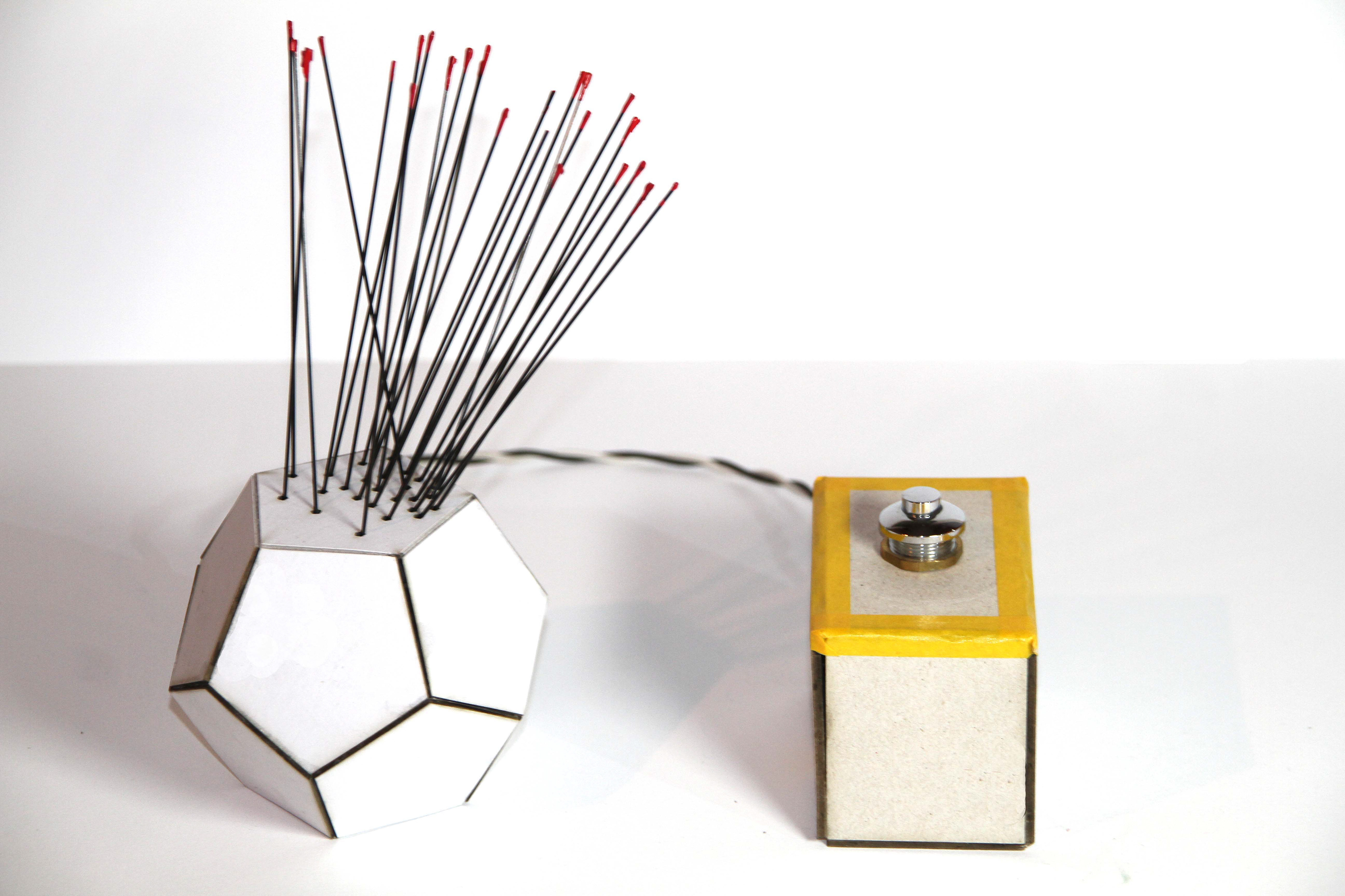 develop our own project on the base of the work of our partners. So we started working on the concept of revealing something that you do not see or you dont know about. And we wanted to imply our body, and how little we are aware of it. Me and my classmate choose three notions to work on: Light - Pressure - Motion. We wanted to reveal those things by the structures reactions to vibrations or - alike Quantum Dots - to UV light. Our objects are tool helping us to be more aware of our environment.